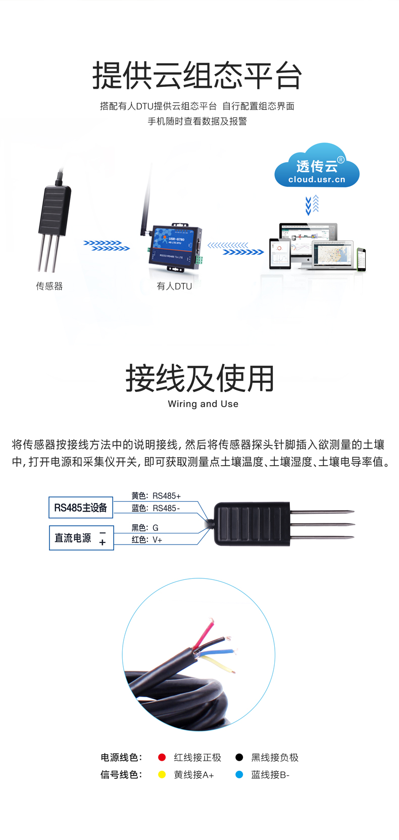 土壤温湿度电导率三合一传感器(无标)使用说明书